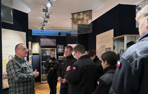 W ramach warsztatów uczniowie i nauczyciele zwiedzili Izbę Pamięci przy zarządzie naszego stowarzyszenia, po której oprowadził gości Grzegorz Grześkowiak.