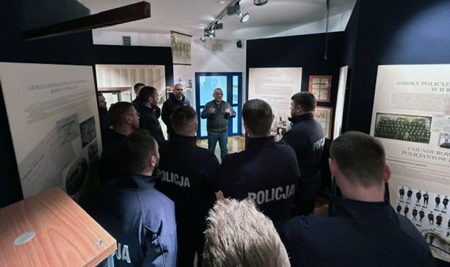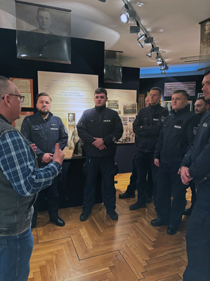 Policjanci zwiedzili Izbę Pamięci przy zarządzie stowarzyszenia, po której oprowadził gości Grzegorz Grześkowiak.