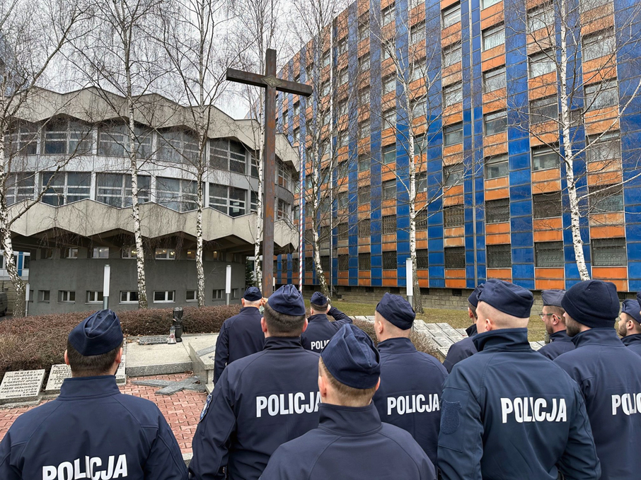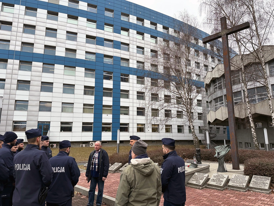 Ponadto opowiedział policjantom o „znakach policyjnej pamięci”, które znajdują się na terenie komendy, a powstały z inicjatywy oraz współpracy naszego stowarzyszenia z Komendą Wojewódzką Policji w Katowicach w latach 2009, 2017 oraz 2019.