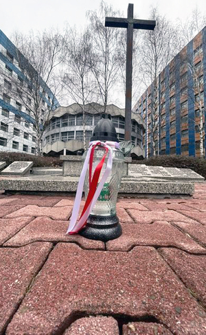 Warsztaty zakończyły się zapaleniem znicza pamięci przez policjantów przed Grobem Policjanta Polskiego - Miejscem Pamięci Narodowej, o którego historii oraz przesłaniu opowiedział członek zarządu - Jerzy Urbańczyk.