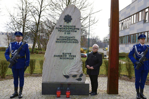 Przewodnicząca Krakowskiego Oddziału Grażyna Tęczar, zapaliła znicze pamięci przed Pomnikiem Małopolskich Policjantów - Ofiar Zbrodni Katyńskiej, wartę honorową wystawił Oddział Prewencji Policji w Krakowie.
