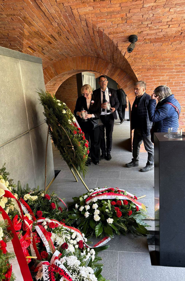 Na zakończenie uroczystości, w Epitafium Katyńskim, delegacje złożyły wieńce i wiązanki kwiatów oraz zapaliły znicze pamięci.